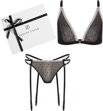The Shayla Triangle Bra Garter Thong Gift Set blends feminine elegance with sensorial indulgence — designed for moments that feel unforgettable. With its refined shape and eye-catching details, the Shayla Polka Dot Triangle Bra and Shayla Polka Dot Garter Thong create a modern, romantic silhouette. Gift Set Includes: Shayla Polka Dot Triangle Bra & Shayla Polka Dot Garter Thong | Perfect for: romantic gifting, elevated self-care rituals, and adding a feminine statement set to your lingerie wardrobe.