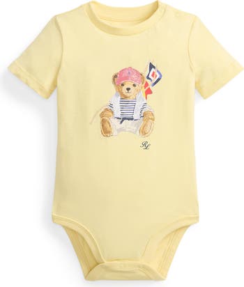 The brand's signature bear brings retro flair to this precious little bodysuit made of breathable cotton and designed with easy snaps for quick changes.