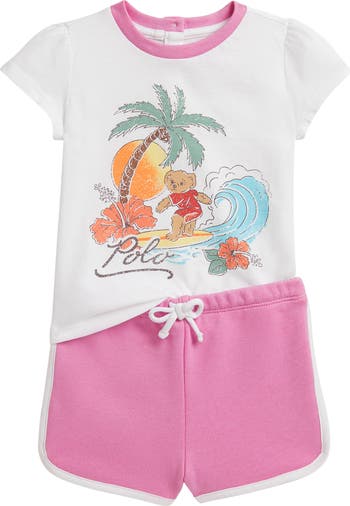 Give your little one a summery ensemble with this cotton T-shirt that includes matching shorts made from a soft terry fabrication.