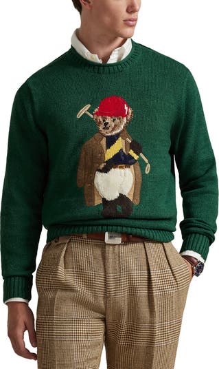 The beloved Polo bear is clad in a tweedy, wool-kissed coat to add a spot of polish to this preppy crewneck sweater.