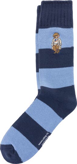 The iconic Polo Bear brings his signature natty style to these boldly striped socks knit for comfort from a soft, breathable cotton blend.