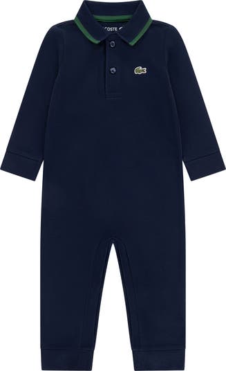 Stretch-enhanced cotton piqué brings breathable comfort to a romper designed with a tipped polo collar to keep your little one looking sporty and always photo-ready. Long sleeves and legs add cool-weather coverage, while convenient snaps make for easy dressing and diaper changes.