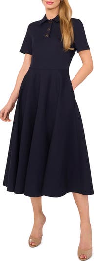 A trio of buttons and a jaunty collar polish a desk-to-dinner dress perfected with a pair of pockets and cut to a beloved and versatile midi length.