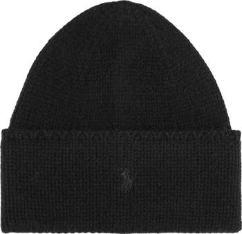 Knit from a warming blend of superfine merino wool and alpaca, this classic beanie sports the embroidered polo player logo to accent the foldover cuff.