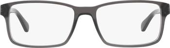 Polished logo hardware gleams at the temples of optical frames in a distinguished rectangular silhouette.