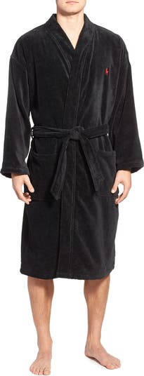 Plush cotton fleece ensures warmth and comfort in a thick robe detailed with preppy equestrian logo embroidery at the chest.