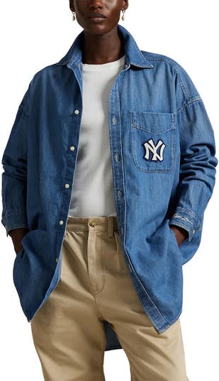 As a boy growing up in the Bronx, Mr. Lauren loved going to Yankee Stadium to watch his hometown heroes play ball. This shirt celebrates Mr. Lauren's long-standing love of the Bronx Bombers and the game of baseball with a felt patch of the New York Yankees logo. Made with cotton denim, it's cut for an oversize fit.