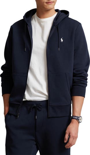 Style a laid-back look in a double-knit zip-up hoodie subtly branded with rider embroidery on the chest.