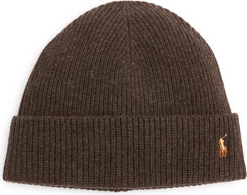 The brand's iconic mallet-wielding polo-player logo is embroidered at the cuff of a beanie knit in a supersoft merino-wool blend.