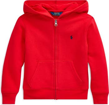 Iconic since its '71 debut, Ralph Lauren's embroidered polo rider hints at the preppy heritage of this kid-sized hoodie cut from cozy cotton-blend fleece.