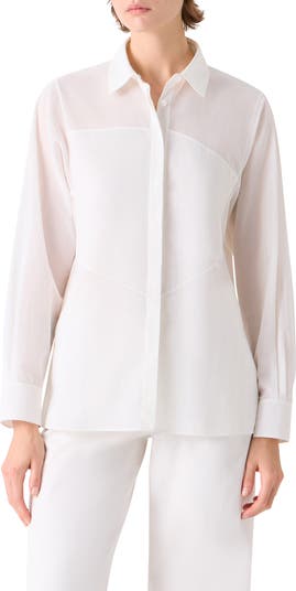 Akris translates the visual language of Op and Pop Art into a gallery-worthy statement with this lightweight cotton-voile shirt, where angled panels echo an era defined by geometric shapes.
