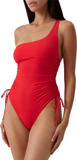 Start your getaway packing list with this one-strap swimsuit with adjustable strings down the hips so you can create a more ruched look.