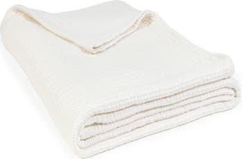 A matelassé weave adds subtle texture to an airy cotton blanket that easily coordinates with any bedroom decor.
