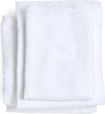 Delicately embroidered scalloped edging adds a pretty, simple finish to this sheet set made from fine linen that gets softer and better with every washing.