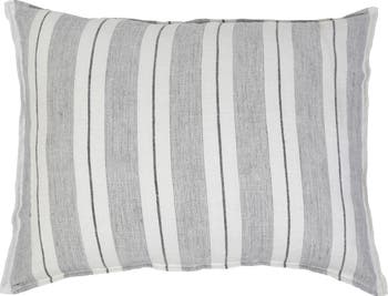Soft stripes wrap a minimalist pillow made from hand-loomed heavyweight linen.