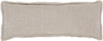 Frayed edging lends shabby-chic appeal to a feather-fluffed accent pillow done in a soft stonewashed weave.