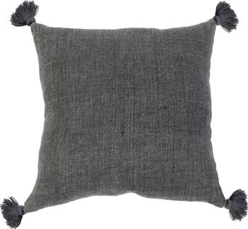 Swingy tassels trim a hand-loomed, heavyweight linen accent pillow that's modern, minimalist and utterly versatile.