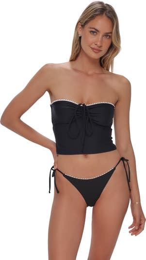 The Pom Pom Dolly Crop Top brings charisma to your swim line up! Her pom pom trim adds delightful detail, while front shirring draws the eye to a sweetheart neckline. With ties that can be worn as a halter or a bandeau, she's a versatile top you can take from beach to boardwalk without a hitch.