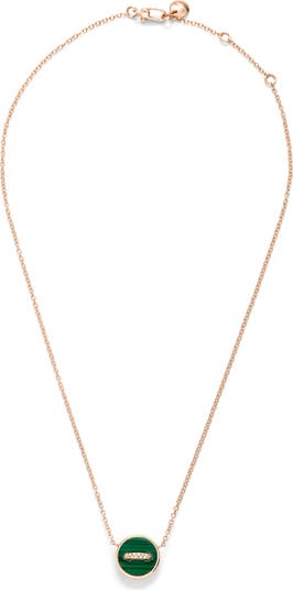 The Italian label reinterprets their '70s button design with this 18-karat rose gold necklace anchored with a dot pendant that reverses from mother-of-pearl to malachite with a sprinkling of diamonds.