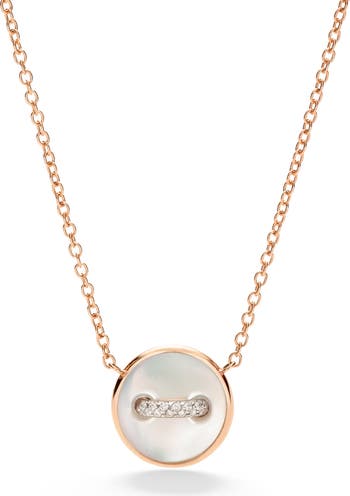 The Italian label reinterprets their '70s button design with this 18-karat rose gold necklace anchored with a dot pendant that reverses from grey mother-of-pearl to white with a sprinkling of diamonds.