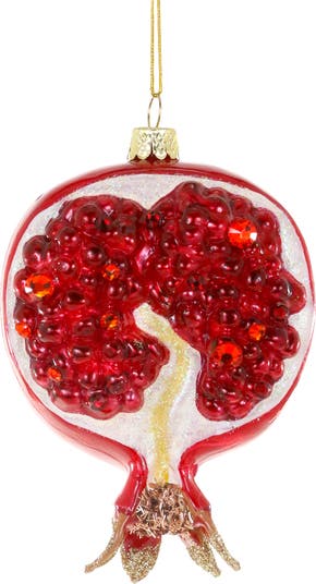 Cold weather is the perfect time to enjoy a fresh pomegranate but this glitter-dusted blown-glass version is perfectly ripe for your decorations all year long.