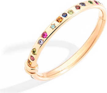 Colorful jewels rest in geometric settings along this 18-karat-gold bangle featuring a slim silhouette.