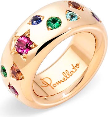Gemstones sparkle within the etched geometric shapes of this 18-karat rose-gold band that reflects Pomellato's goldsmith heritage and vibrant Milanese style.