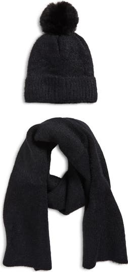 Wrap yourself up in this supercozy set of a snug pompom beanie and fuzzy scarf so your cold-weather look is always on point.