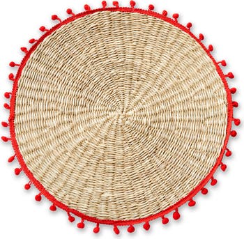 Add a splash of color and whimsy to your dining experience with our Pompom Placemat in Red Multi. Hand-crafted from durable seagrass, this charming placemat features a delightful border of vibrant red pompoms that brings a playful touch to any table setting. Measuring 13 inches in length and width, with a height of just 0.25 inches, it’s the perfect size for everyday use or special summer gatherings. The natural seagrass material not only adds an organic feel to your decor but is also easy to maintain—simply wipe clean to keep it looking fresh and vibrant. Whether you're hosting a casual brunch or a festive dinner party, these placemats will elevate your table with their unique design and cheerful colors. Ideal for both indoor and outdoor dining, the Pompom Placemat is a versatile addition to your home textiles that will impress your guests and brighten up your meals. Embrace the joy of dining with this fun and functional piece that celebrates the spirit of summer and everyday gatherings.