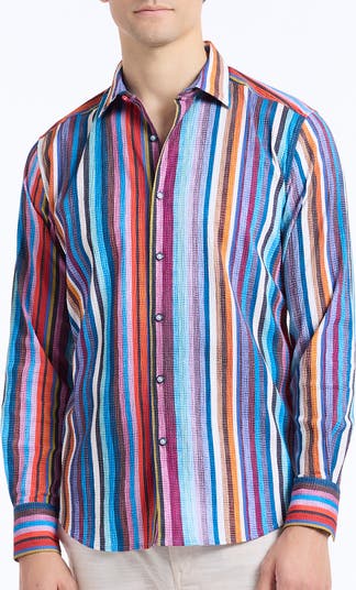 Pomsford Stripe Stretch Cotton Button-Up Shirt
