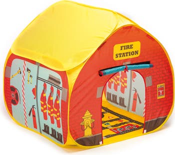 Have a budding Fireman in the family? The Pop-it-Up® childrens Firestation play tent comes with a unique streetmap printed play mat. The tent promotes imaginative play and strengthens creativity in kids. 100% polyester, easy to set up, easy to fold away. It folds into a useful and compact carry bag. When assembled it is 35.5" x 35.5" x 35.5" and includes 2 doors and a removable roof. Adult assembly required. Item includes tent, roof and mat. Any other items pictured are not included.