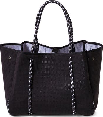 This surprisingly lightweight tote made from perforated neoprene is topped with sailing-rope handles and outfitted with a tethered zip-top pouch that can be removed and carried separately. Perfect for travel, beach trips, workouts and more, the whole thing can be tossed into the washer when it gets grimy.
