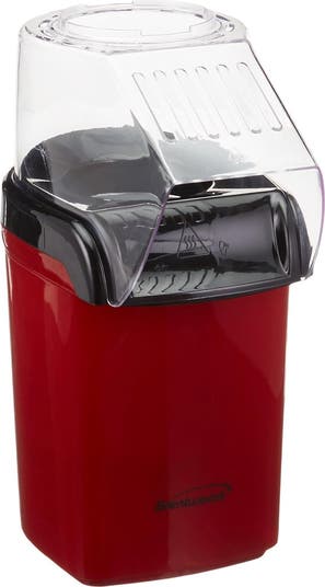 The Brentwood 8-Cup Popcorn Maker in red offers the same reliable performance in a bold, eye-catching design. Capable of popping up to 8 cups of popcorn per batch, it is perfect for quick snacks or small gatherings. Hot-air popping technology eliminates the need for oil, producing light and crispy popcorn with less fat. The compact size makes it easy to store, while the bright red finish adds a fun pop of color to any kitchen or entertainment area. Simple operation ensures fresh popcorn is ready in minutes, making it a convenient choice for everyday use.