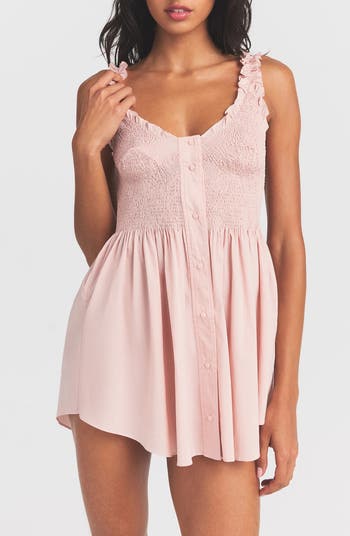An effortless one-and-done style, this minidress is crafted from lightweight poplin with smocking along the bust. A scoop neckline and buttons down the center front add classic detail, while the easy silhouette keeps it relaxed.