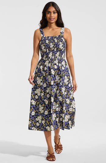Meet the midi dress that's equal parts playful and polished. A fully smocked bodice shapes and flatters, while the square neckline with delicate ruffle detail adds a touch of feminine charm. The fit-and-flare silhouette flows beautifully to a versatile midi length and on-seam pockets keep it effortlessly practical. Perfect for everyday moments or special occasions, this dress brings easy style with a flattering finish.