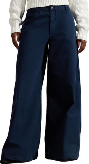 Drapey wide legs create an appealing silhouette on these high-waist pants cut from crisp poplin.