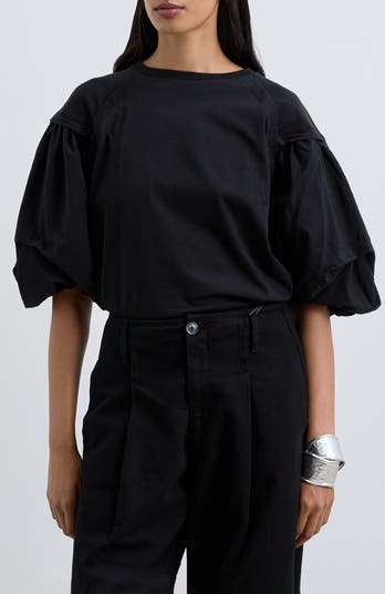 T-shirt made of 100% BCI cotton and regular fit, round neck and long puff sleeves