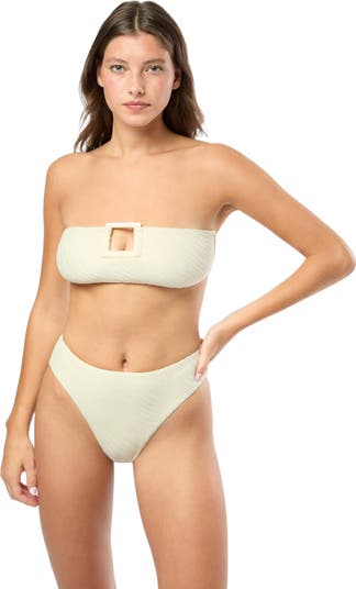 - Made from two-tone tricot, our Poppy bikini top is a bandeau style defined by a square center cutout, encased in contrast trim, and a removable halter-neck tie.