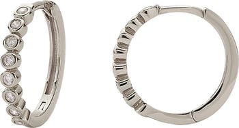 Round cubic zirconia bezels reflect light from the front of these lovely hoop earrings cast in sterling silver or 14-karat gold vermeil. Delivered from the Made by Mary studio in a giftable book-style box, each piece is carefully crafted with your story in mind.