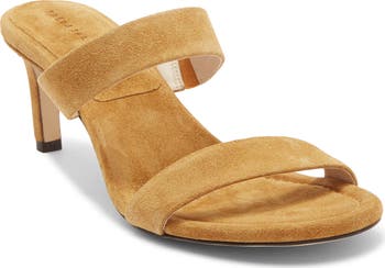 Thick, padded double straps top this minimalist slide sandal handcrafted in Italy and perched on a wrapped setback heel.
