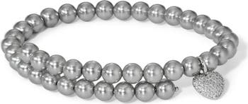 A structured wrap design creates refined structure that perfectly combines with the playful feel of a pavé heart charm in this faux-pearl bracelet.