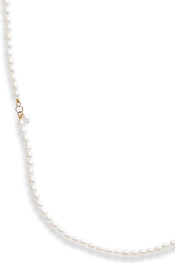 Charms dangle from 14-karat-gold links on this handcrafted keshi-pearl necklace that's so long you can wrap it three times for a layered look.