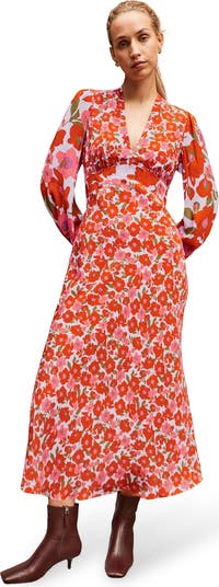 An elegant dress with poppy print, perfect for adding a touch of sophistication to any occasion. Features a fitted waist and comfortable fabric for all-day wear.