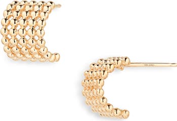 Polished beads create a bubbly silhouette on each of these hoop earrings crafted from 14-karat gold.