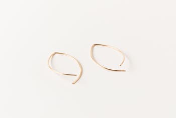 A pointed oval shape formed from a single wire of high-polish 14k gold fill, threaded through the ear and left open at the bottom. The Poppy is bigger than it looks in photos and better in person — at 1.25 inches it has real presence without any weight. No clasp, no hardware. Just a clean, continuous line that moves with you. The shape is graphic enough to stand on its own and simple enough to wear every day. Pair it with studs for a layered ear or let it be the only thing you put on. Either way, it's the earring people will ask about. Handcrafted in 14k gold fill. 1.25" threader. Sold as a pair.