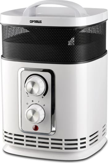 The Optimus Portable 360 Surround Ceramic Heater with Thermostat is the perfect heater for cold spaces. Features a modern design suitable for any home office areas. This heater comes with a 750w and 1500w setting for chilly situations. Safe for daily use, its built with overheat protection and a tip-over safety switch. The 360 mesh opening allows for heating from all directions. Item Dimensions: 8.00" x 7.30" x 11.20" Item Weight: 5.00lbs