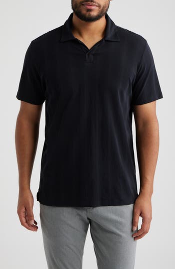 An open johnny collar relaxes the vibe of this polo cut from a pima-cotton-enriched ribbed knit that gives your stack a solid go-to for seasons of comfortable good looks.