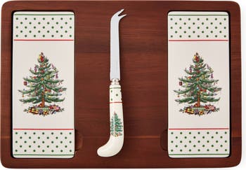 Add a nostalgic touch to your gatherings with this polka-dot accented cheese set decorated with Spode's iconic Christmas tree that's been loved since its 1938 introduction.