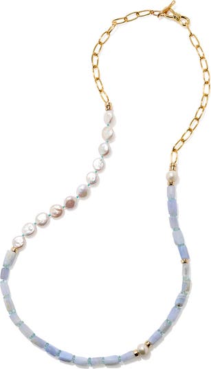 - Freshwater pearl/24k-gold plate/blue lace agate/turquoise/quartz