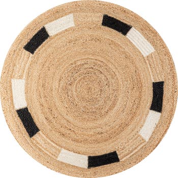 Add modern Bohemian style to your living room, bedroom, or home office with our flat-weave jute circle rug. Handmade by skilled artisans, this casual rug has a chic geometric border design. Versatile, easy-care natural fibers are the perfect neutral flooring for minimalist or modern cottage interiors.